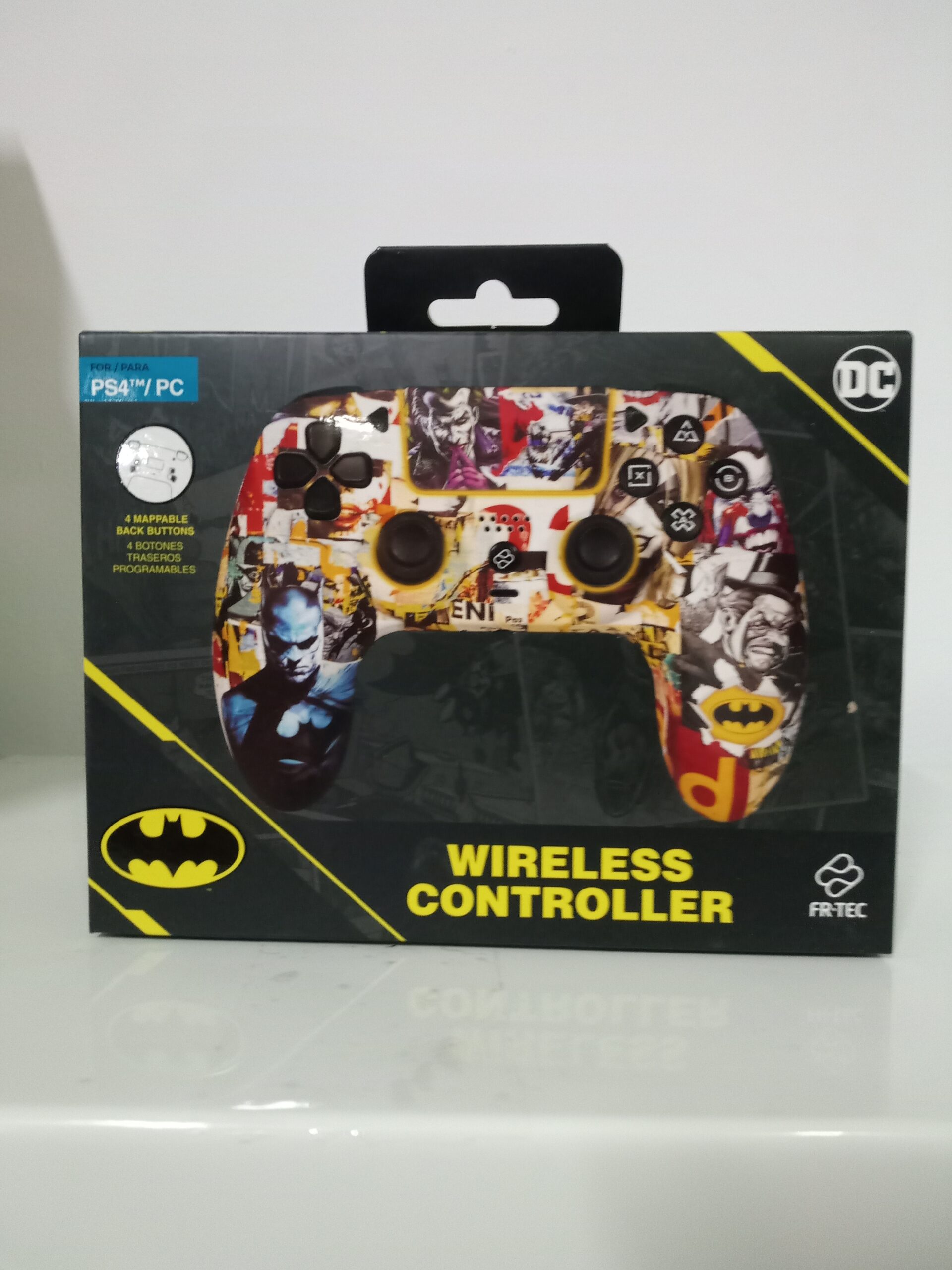 O Gamepad Batman de FR-TEC es compativel tanto com PC como como PS4. É um comando ergonómico com as funciones do comando de PS4 para largas sensações de jogo.