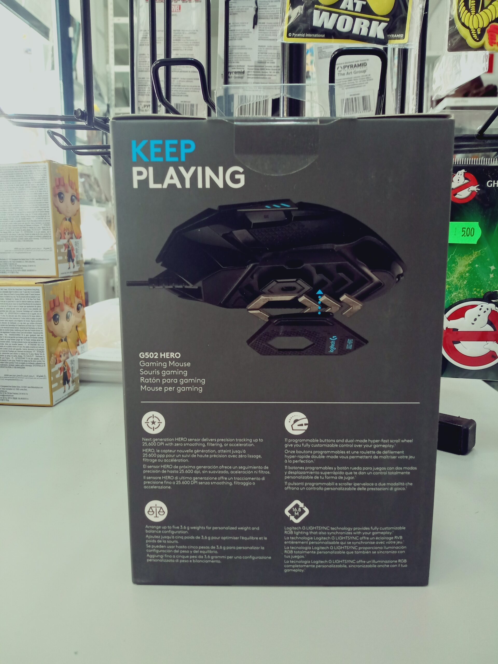 Teu rato para gaming de alto rendimento oferece mais funciones e precisão que nunca. Personaliza a iluminação RGB para que coincida com teu estilo e sincroniza com outros produtos Logitech G. O rato para gaming de alto rendimento G502 inclui novo sensor óptico HERO 16K de próxima geração para máxima precisão seguimento superior.